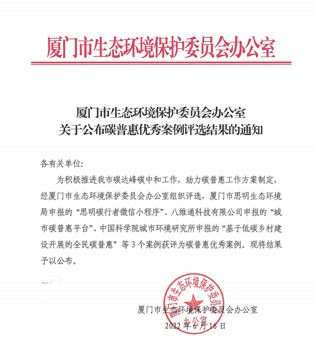 八維通“城市碳普惠平臺”項目獲評廈門市碳普惠優秀案例