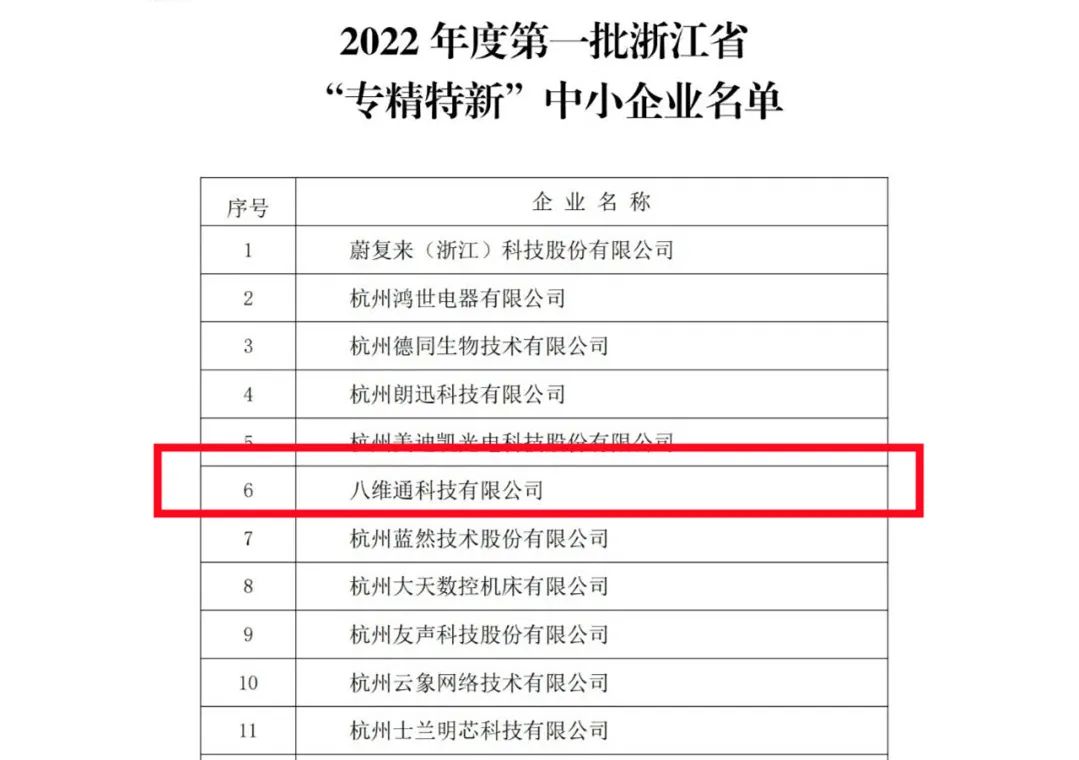 喜訊 | 八維通獲評浙江省“專精特新”企業!