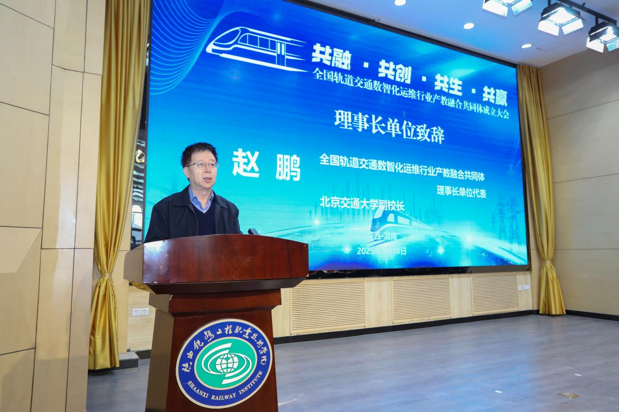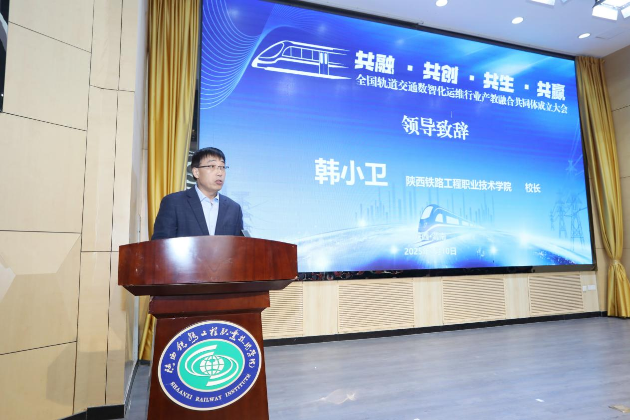 會上,陜鐵院韓小衛校長闡述了成立產教融合體的重要意義和計劃舉措。他指出,當下數智化運維是軌道交通行業發展必然趨勢,學校聯合八維通、北交大等80余家相關單位,牽頭成立“全國軌道交通數智化運維行業產教融合共同體”,將創新工作機制,全力搭建產教融合對話平臺,探索共同體建設有效路徑,形成產教融合的新發展格局。