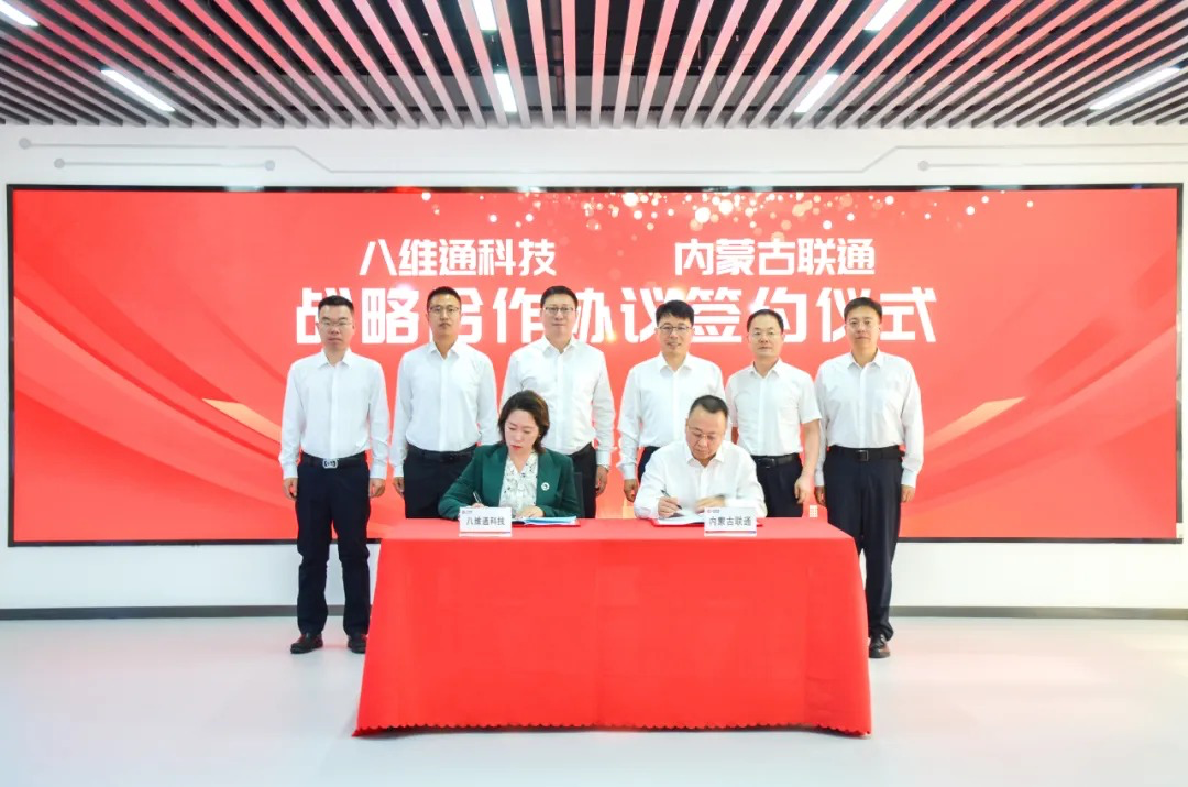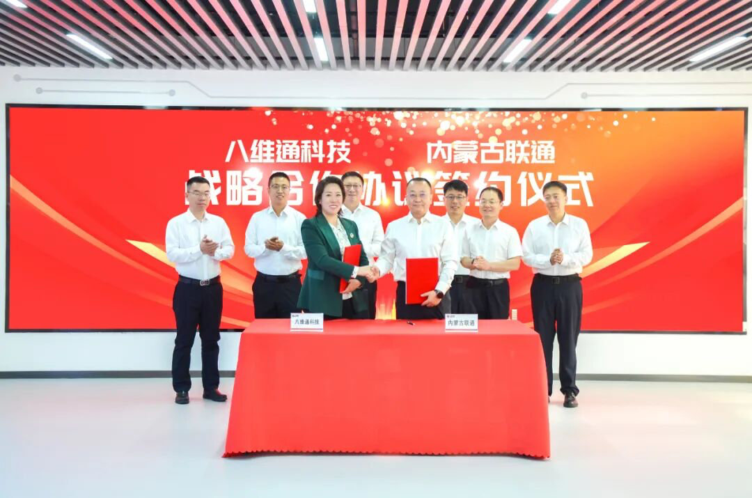 八維通科技有限公司董事長(zhǎng)楊宏旭、內(nèi)蒙古八維通數(shù)智科技有限公司董事長(zhǎng)曾妍及相關(guān)業(yè)務(wù)負(fù)責(zé)人,內(nèi)蒙古聯(lián)通黨委書記、總經(jīng)理韓敏,黨委辦公室、政企客戶事業(yè)部、產(chǎn)業(yè)互聯(lián)網(wǎng)公司負(fù)責(zé)人等共同出席簽約儀式。