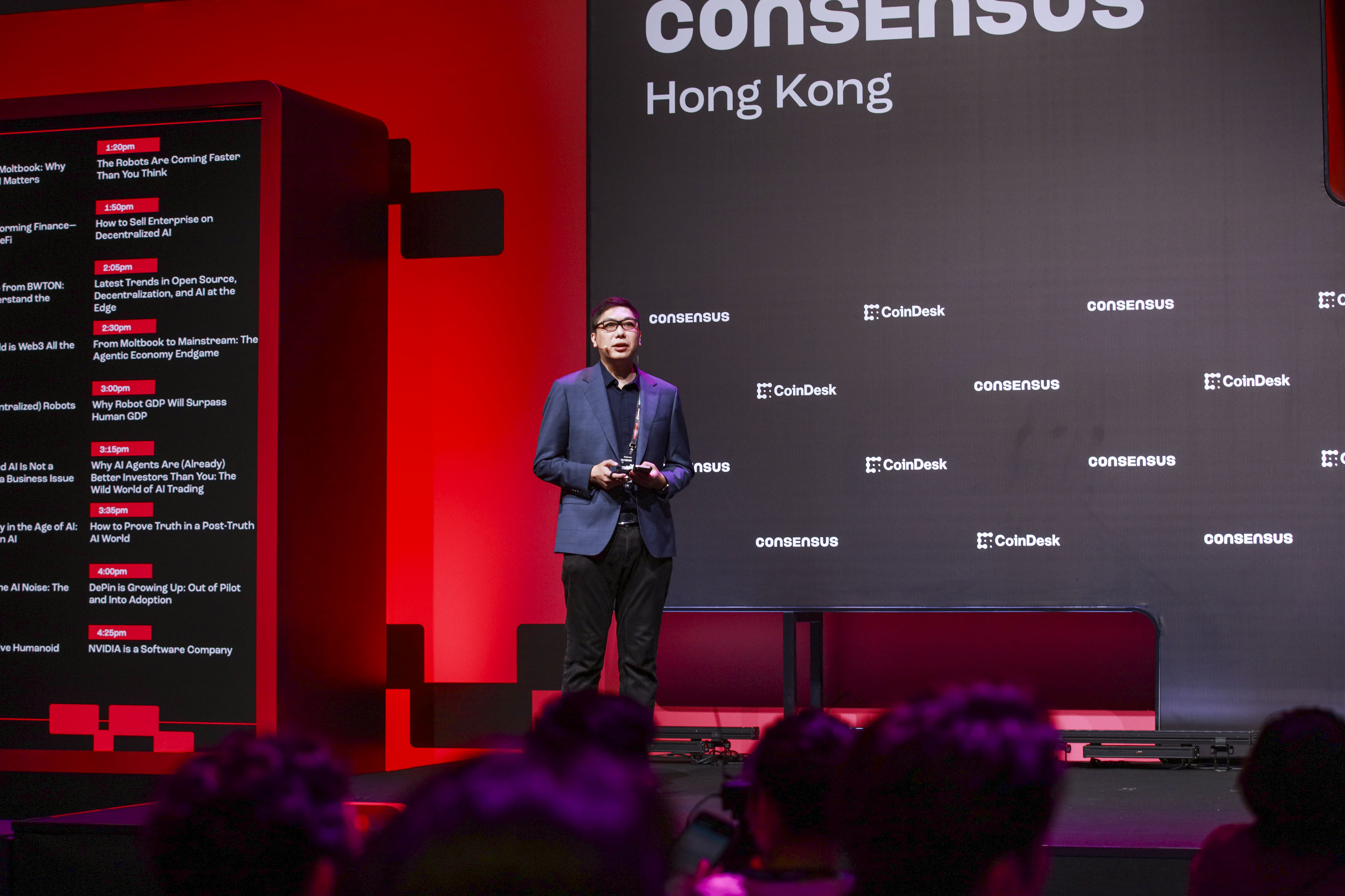 在全球數字資產從“概念探索”邁向“建制融合”的關鍵節點,2026年2月10日至12日,備受矚目的Consensus Hong Kong 2026在香港盛大舉行。本屆大會以“Web3與區塊鏈加速應用新時代”為主題,首度增設“人工智能與機器人峰會”,系統探討AI、機器人技術與區塊鏈的融合路徑與生態構建。作為空間智能領域領軍企業,八維通科技有限公司團隊應邀參會,攜公司前沿的具身智能解決方案精彩亮相。通過實景機器人演示與深度演講,八維通向全球展示了“物理世界可計算、可交互、可信任”的智能化未來。